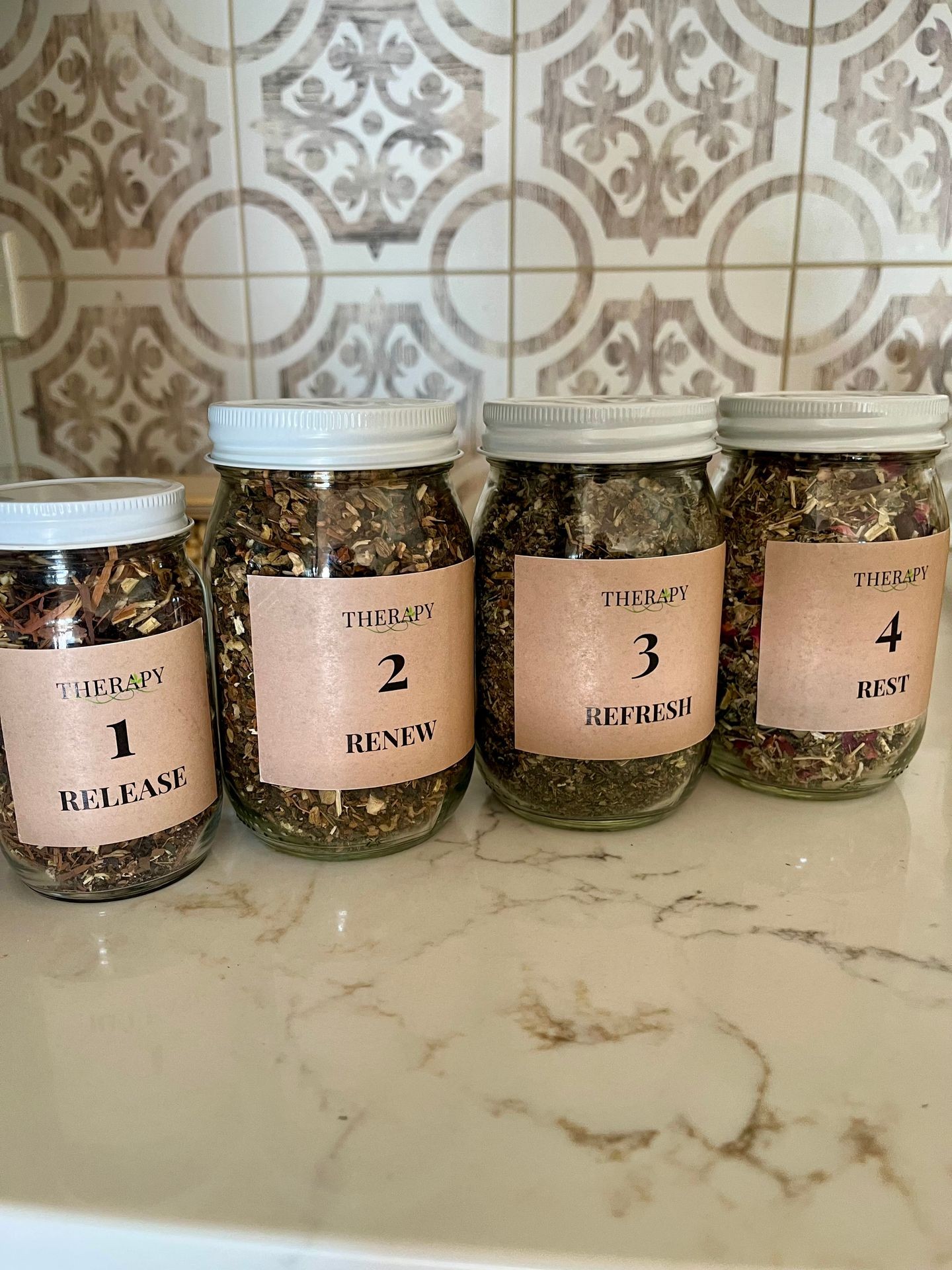 A full 30-day supply of our proprietary herbal blends in glass jars.